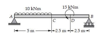 101)For the beam shown in Fig., the B.M.D between A and B is ___________ .
